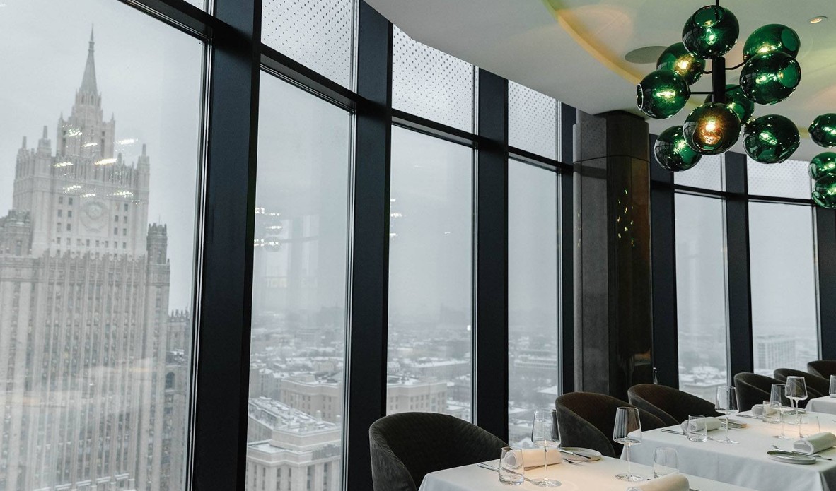 ร้านตั้งอยู่สูงจากพื้นดินถึง 88 เมตร ใจกลางย่านประวัติศาสตร์ของกรุงมอสโก มอบมุมมองแบบรอบทิศที่งดงามตระการตา